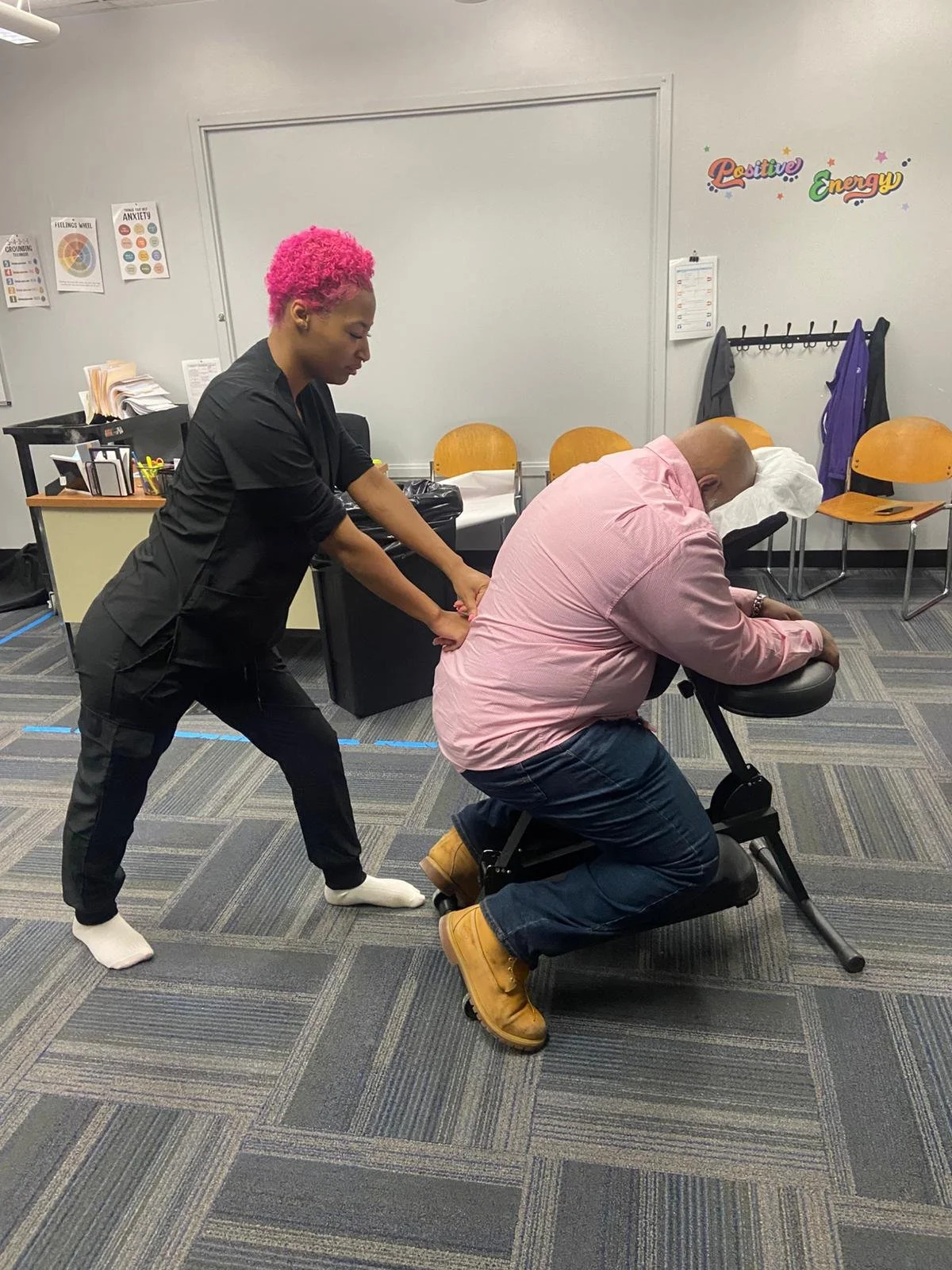Chair massage is a quick and effective way to relieve stress, ease muscle tension, and boost focus. This seated, clothed massage targets the neck, shoulders, and back—common areas of tension from studying, working, screen time, and stress. No need to change clothes or carve out hours for self-care—just a few minutes can help you feel refreshed, relaxed, and ready to take on your next class or exam! Chair massages are typically 10-15 minutes each.